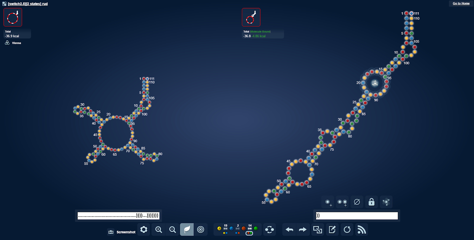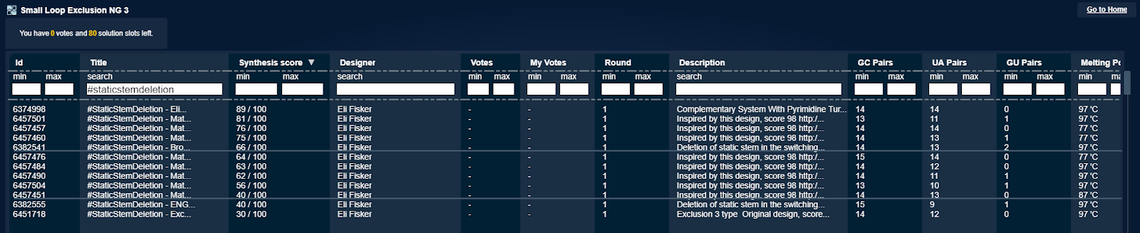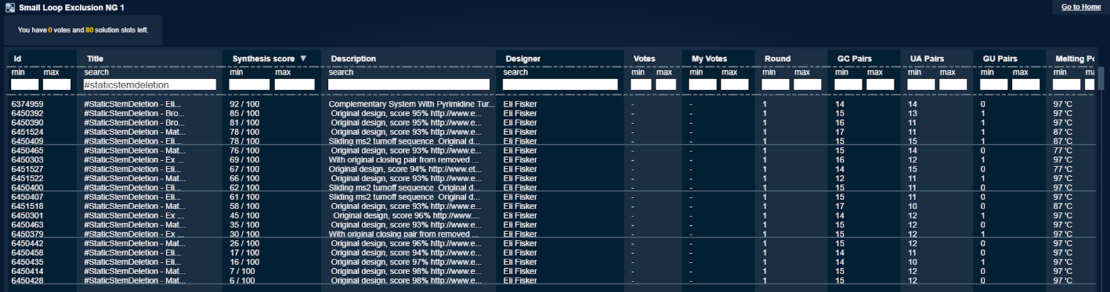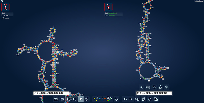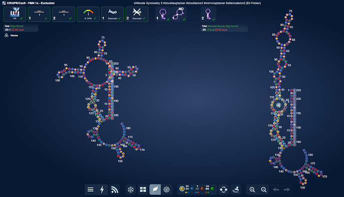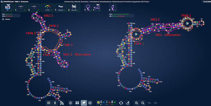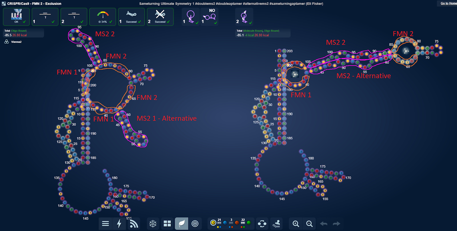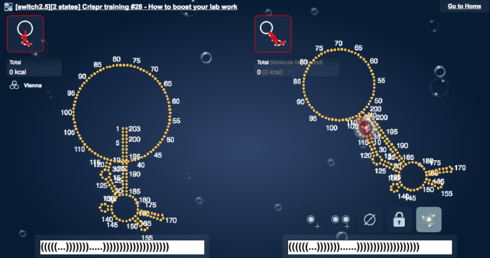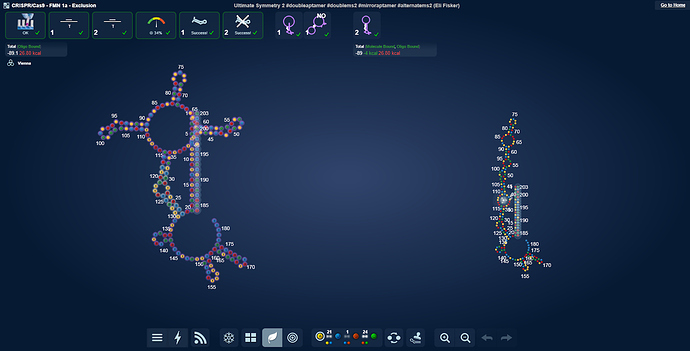 Here are the two small loop labs that are equivalent to the Exclusion NG 2 lab. All these designs are based on winning Exclusion NG 2 designs, but without space for and the sequence of the static stem. They all took a score hit.