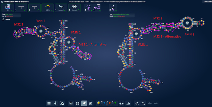 What I’m thinking of is to use them on a design with 1 static stem. And do something like change the position of the static stem, so it in 30 designs will be next to the aptamer gate, in 30 be next to the MS2 and in the last 30 be inbetween.