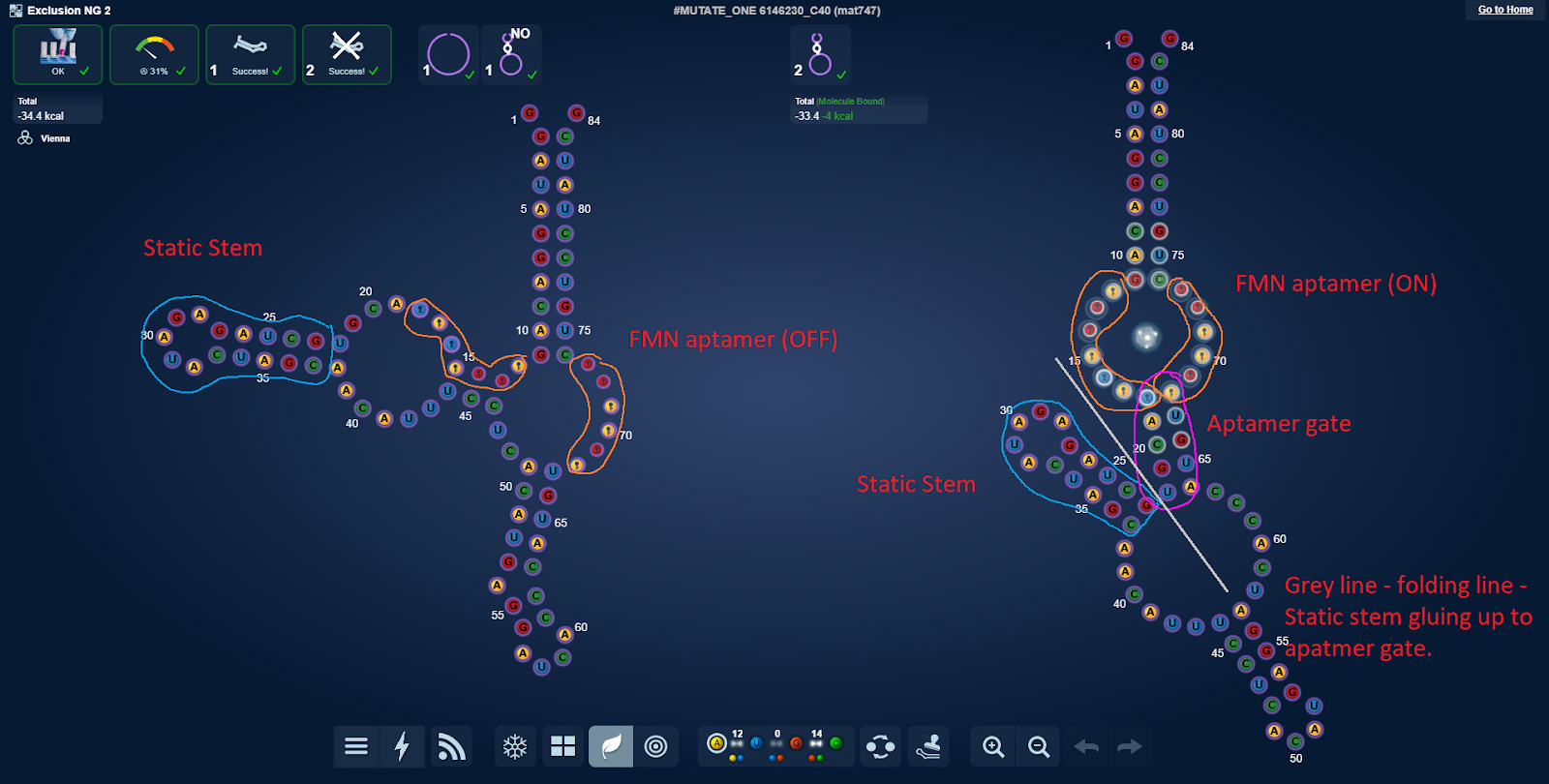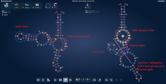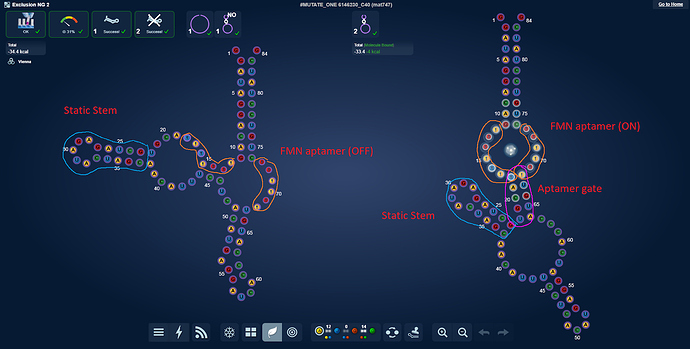 Particularly in the Exclusion NG 2 lab did this stand out. In our lastest riboswitch lab (101), roughly 95% of all the winners have the static stem right next to the aptamer gate.