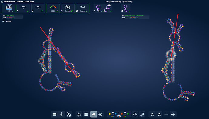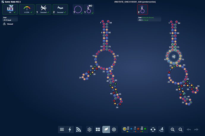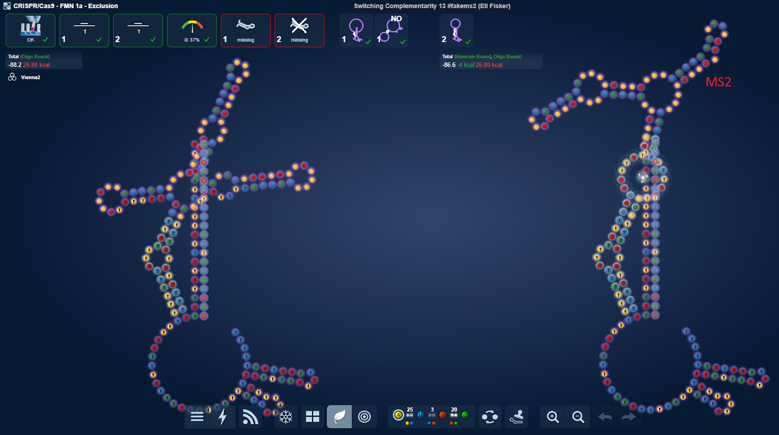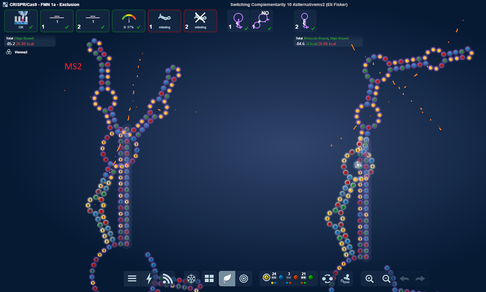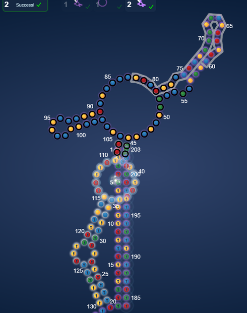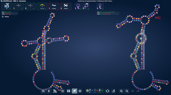 I realized that it didn’t really matter at which of the 3 hairpin positions I put MS2 at. I could solve it nonetheless. What I wonder is what lab will think. Will it prefer the usual middle one as I expect or will it be possible solving it with the one of the side MS2’s?