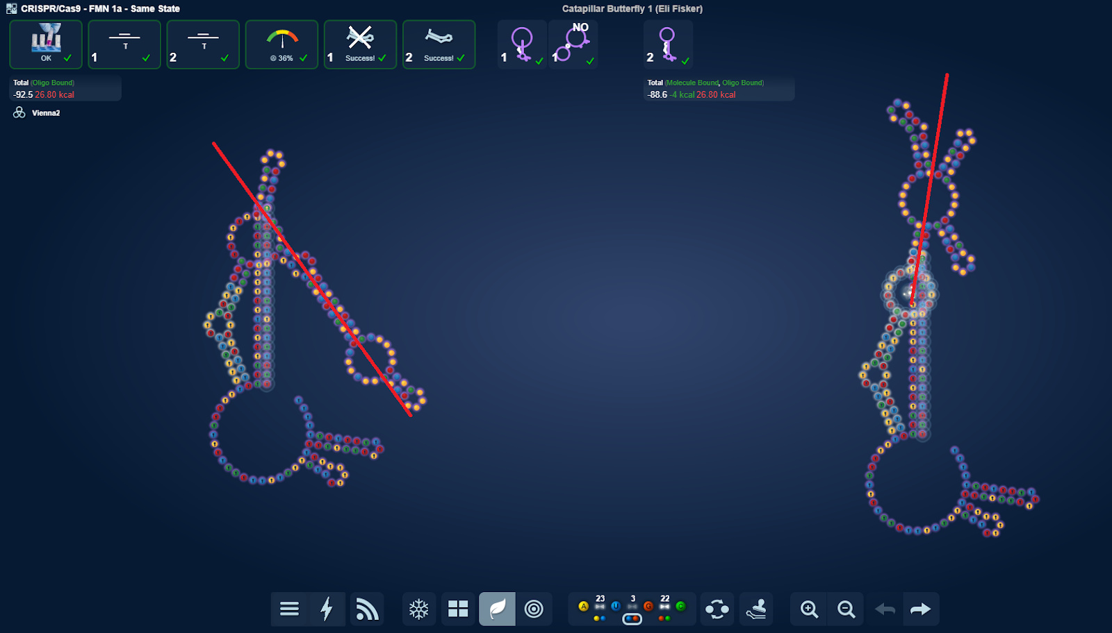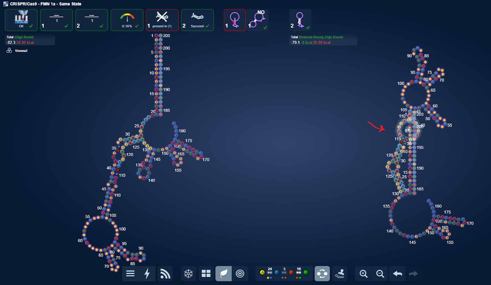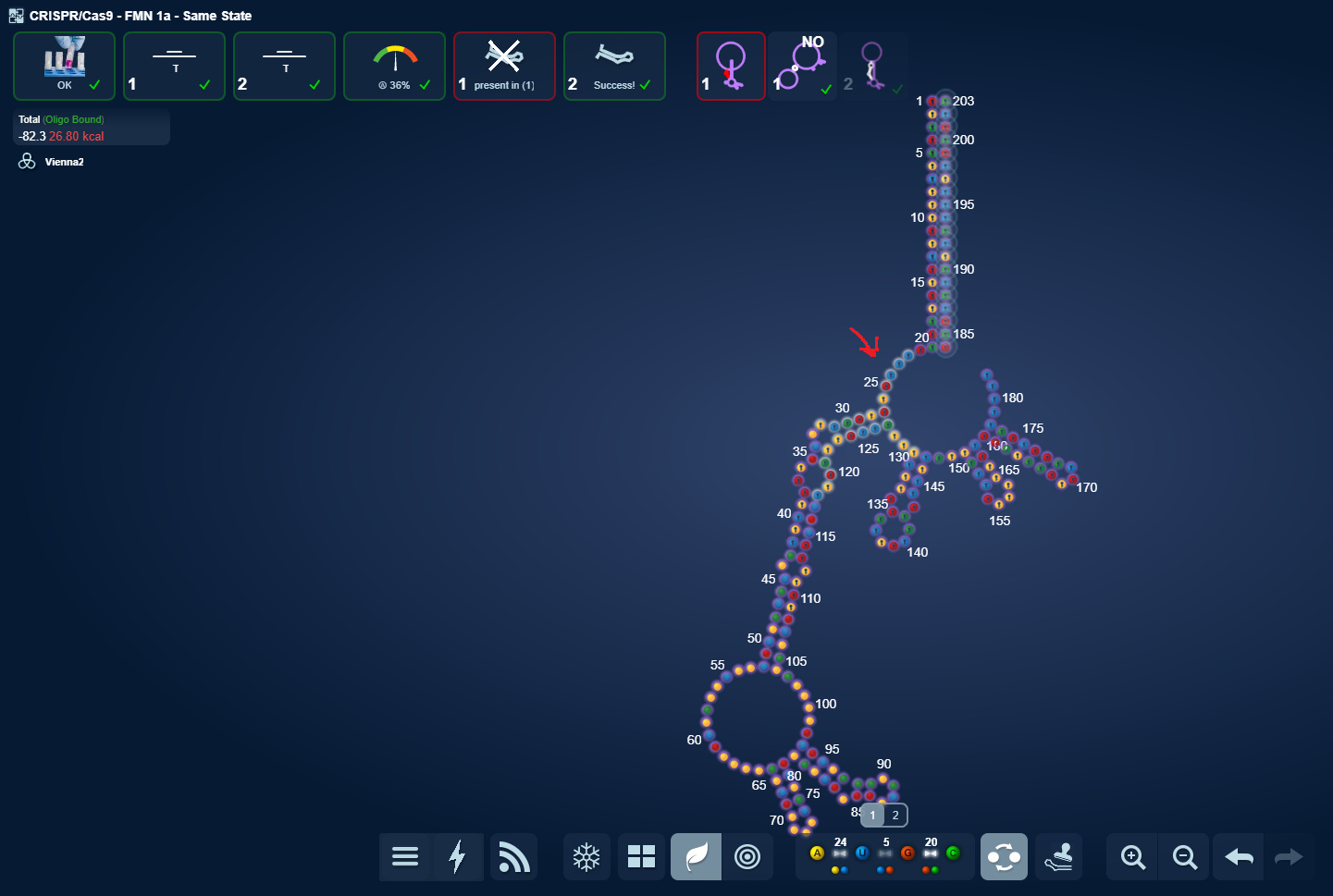 I realized that it didn’t really matter at which of the 3 hairpin positions I put MS2 at. I could solve it nonetheless. What I wonder is what lab will think. Will it prefer the usual middle one as I expect or will it be possible solving it with the one of the side MS2’s?