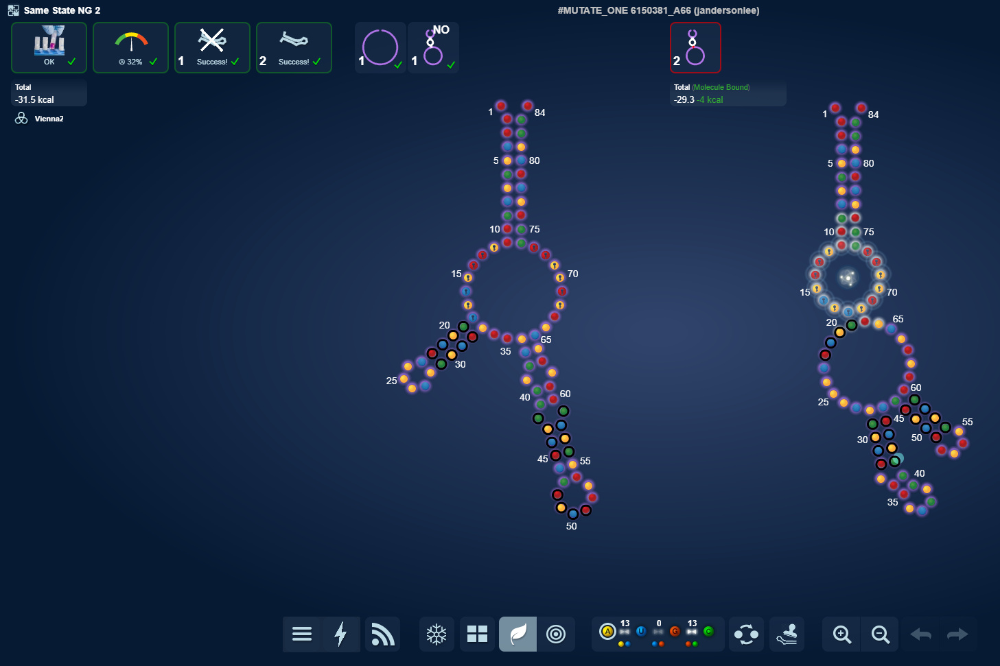 Generally Past example from good riboswitch lab. Good switches generally like to fold with symmetry to them.