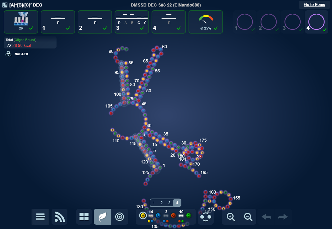 I played with the 4 switching stems of the same kind interacting with each other in both Exclusion and Same State labs. Here is one with extreme sequence bias. I tampered with the alternative MS2 too, to make it even more extreme. This is pure CU and GA repeats.