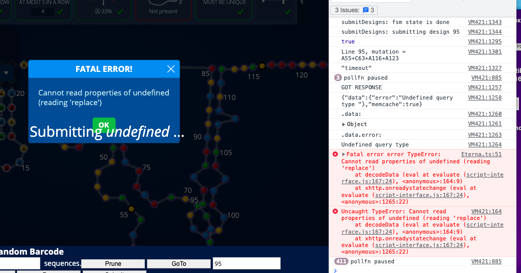 Having to switch my brain and the code from python to JavaScript/EternaScript is proving to be a challenge. (UGH. Just spent an hour finding a leftover “else:”)