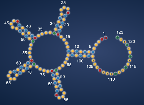 The data are the chemical accessibilities of each RNA nucleotide to the ‘SHAPE’ reagent, developed by the Weeks lab at UNC. For the aficionados, the reaction is an acylation of the 2’ hydroxyl of the RNA nucleotide by a reactive anhydride. Strongly modifed nucleotides, at least empirically, correspond well to ‘flexible’ regions of the RNA, i.e. the ‘unpaired’ parts of your EteRNA designs, if they fold correctly.