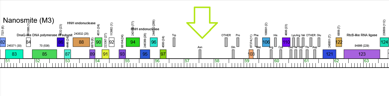 GOLLD showing up in the phage Nanosmite in the M3 subcluster as a gap among the proteins: