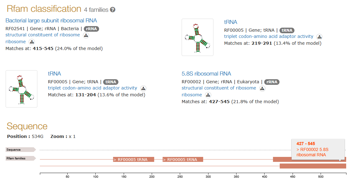 Two tRNA’s, 5.8S + large ribosomal subunit (LSU) matching GOLLD