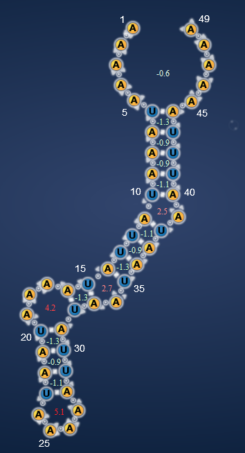 Not like this - go for the highest possible value of negative energy in the hook or puzzle starting point, that will make this part stronger and more likely to stay together. I generally just start with the blue nucleotide to the left: