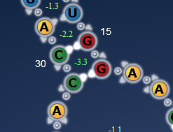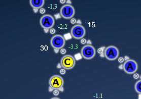 This does not take into account the placements of these double blocks of GC-pairs. It is my experience, that they seem to make trouble if connected to a multiloop, as in this Eterna ensemble Shape test design (97%) design 05, sparse 5.